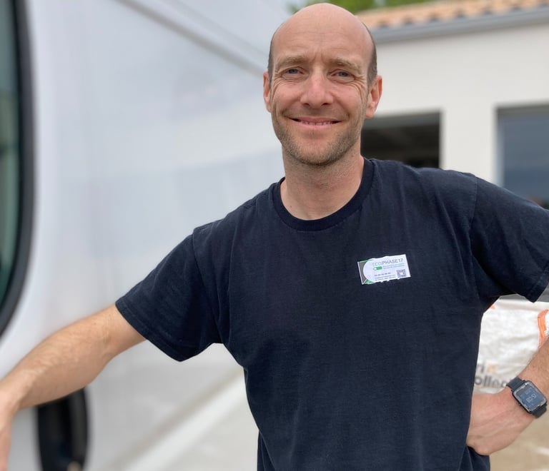 En 2023, avec mon associé GUILLAUME MERCIER, nous avons repris une entreprise locale pour créer ECOPHASE17, une structure à taille humaine, proche de ses clients, où chaque projet est suivi avec attention.